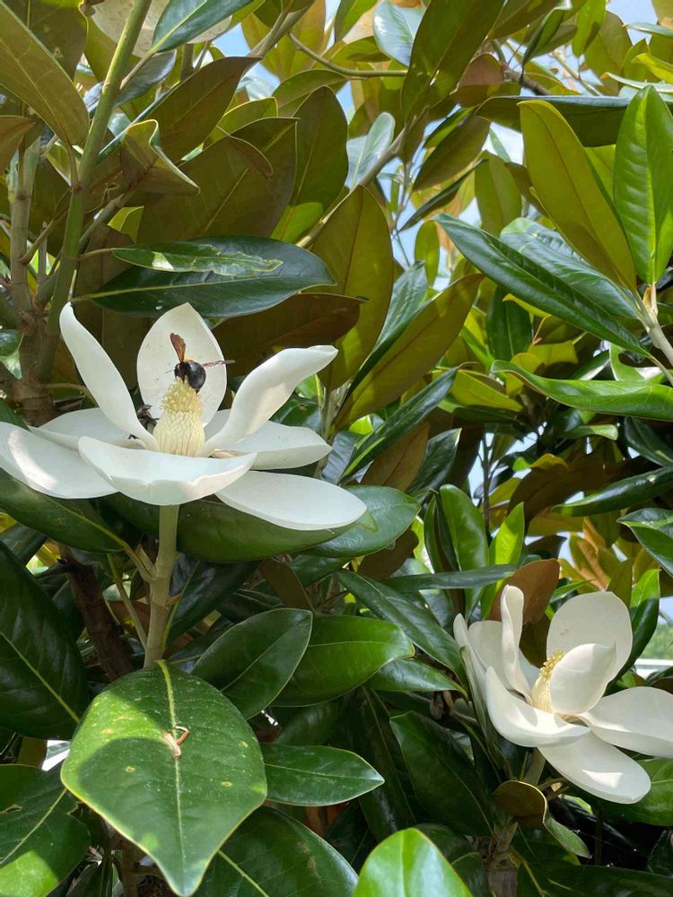泰山木の花は子供の顔位大きく迫力満点、何時までも見ていて飽きない花です。素晴らしい・・