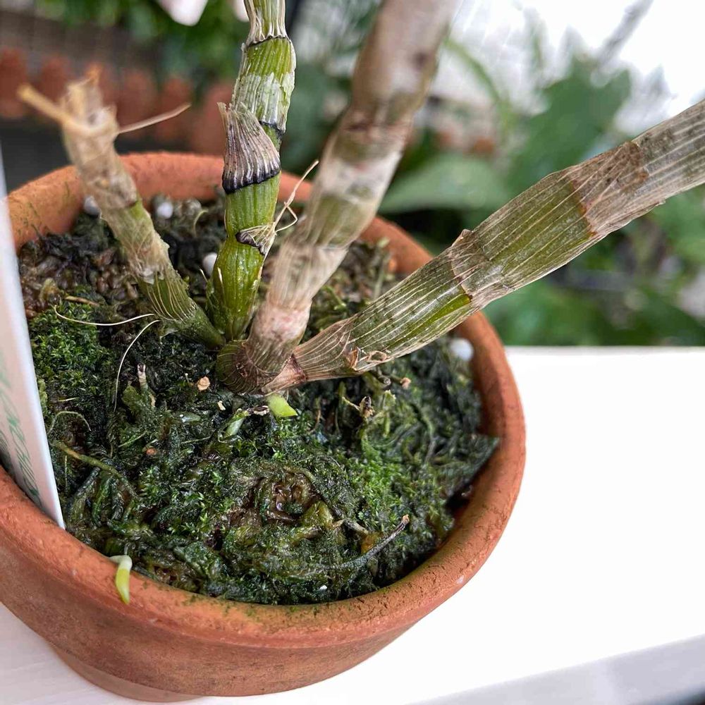こんにちは。我が家も3家族が同居中、お花は年に一度なれど、新芽が次々誕生中。もう少ししたら、尖端近くに根が張り出しますよ。