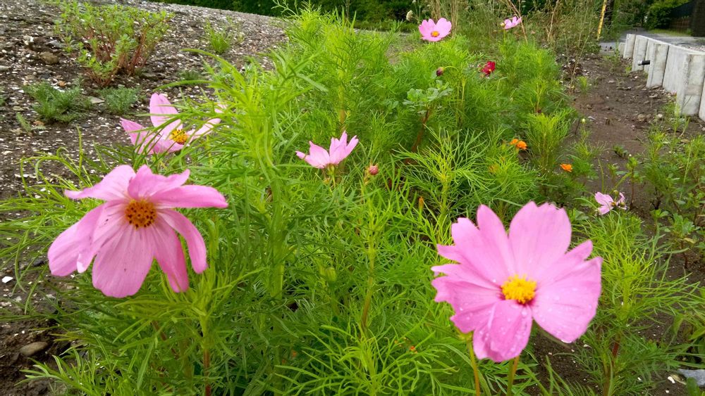 勝手に花いっぱい運動エリアのコスモスが、ちらほらと咲いてきましたよ☺️