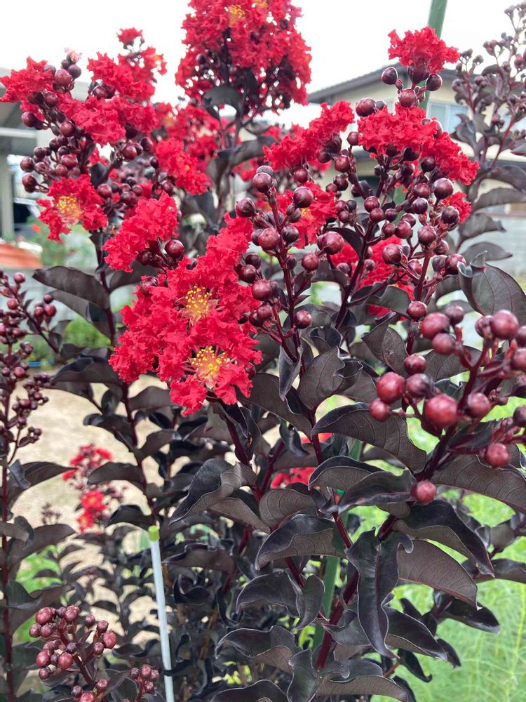 銅葉の百日紅ブラックパールルージュが咲き始めました。