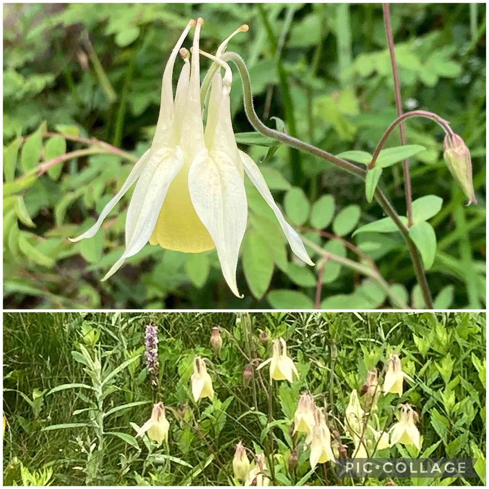 キバナノヤマオダマキが群生してました。白い部分は萼片で、お花は内側の黄色い部分。この花を見ると時代劇に出てくる笠とベールを被った美しいお姫様👸を連想します。ちなみに萼片が赤茶色のがヤマオダマキ。これはごく僅かしか咲いてないのに撮影してきませんでした😅7/17美ヶ原にて