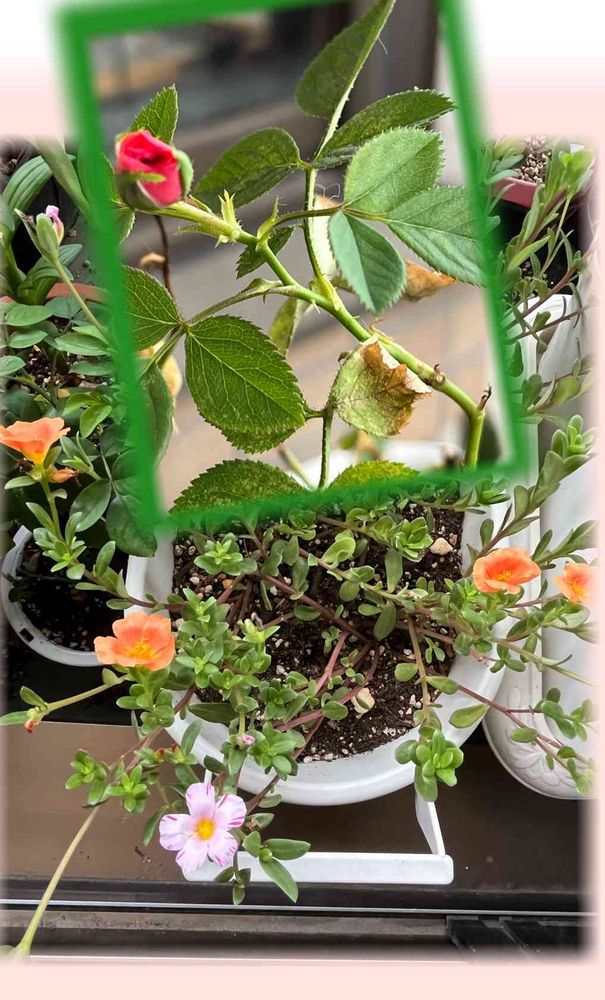 バルコニー/ベランダ,つるバラ...,斑入りポーチュラカの投稿画像