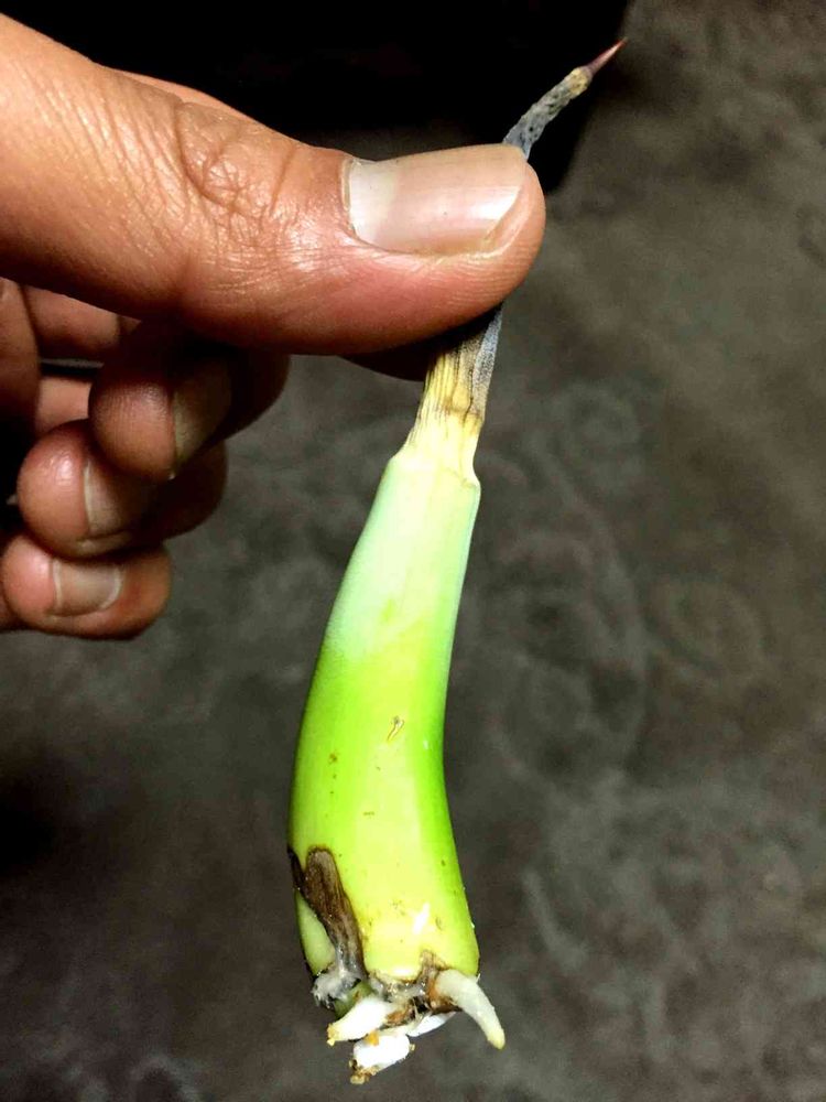 去年の10月頃に痛んだ葉っぱを剥いたら根ごと取れて枯れたまま放置してたアメリカーナを1週間前に土に挿してたら、根が出てた!