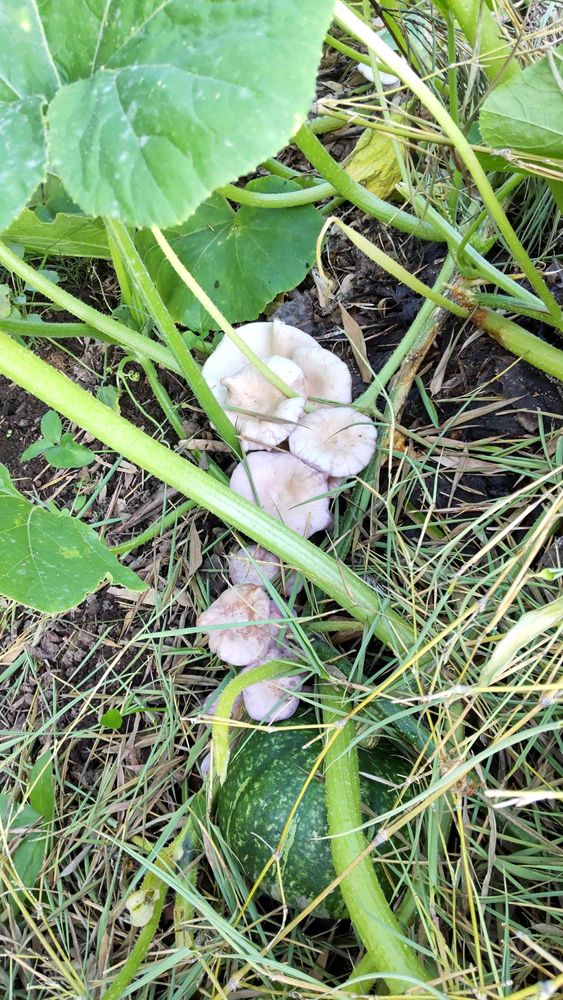 草や生ゴミを捨てた所にかぼちゃが侵略しています😅この🍄は今年初です