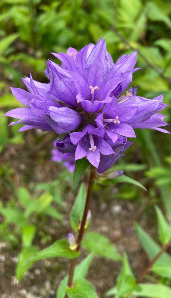 今日のお花💐 6月にもあげましたが、リンドウザキカンパニュラです。お花の解説のpicではもっと華やかな淡い紫の花がフワフワと咲くみたいなんですが、私がこれを見つけた山のトレッキングコースでは茎も太く花もなんかゴワッとして強そう🤣野生化してる😅⁉︎ 強く逞しく美しく‼︎
