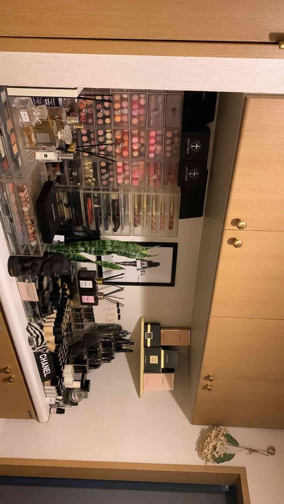玄関の全体の感じは相変わらずここはいじらないのでこのままなんだけど 本当は窓とか光が入るなら ここには植物🌱を置きたかったんだけど育たなそうで ダンボール何箱もまだ開いてない化粧品が山のようにあるけどもう消費期限切れだからここも含めて使ってないです😅💦💦