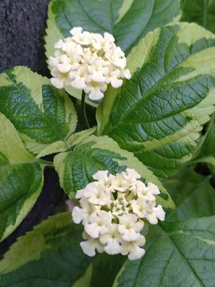 優しいクリーム色のお花と斑入りの葉がとてもかわいいです💕
