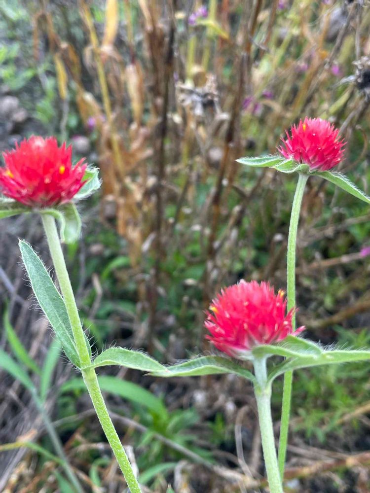 こぼれ種で咲いている千日紅の中では赤が一番元気かなぁ❣️