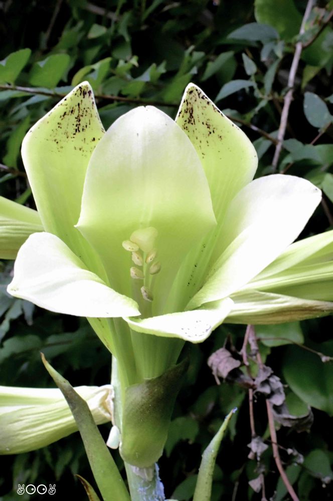 ユリの仲間は 大抵 雄蕊も雌蕊も 花弁から 飛び出るのだが、 このウバユリは 花弁の奥に ヒッソリと 佇んでました。花弁も 開かないし・・・😯