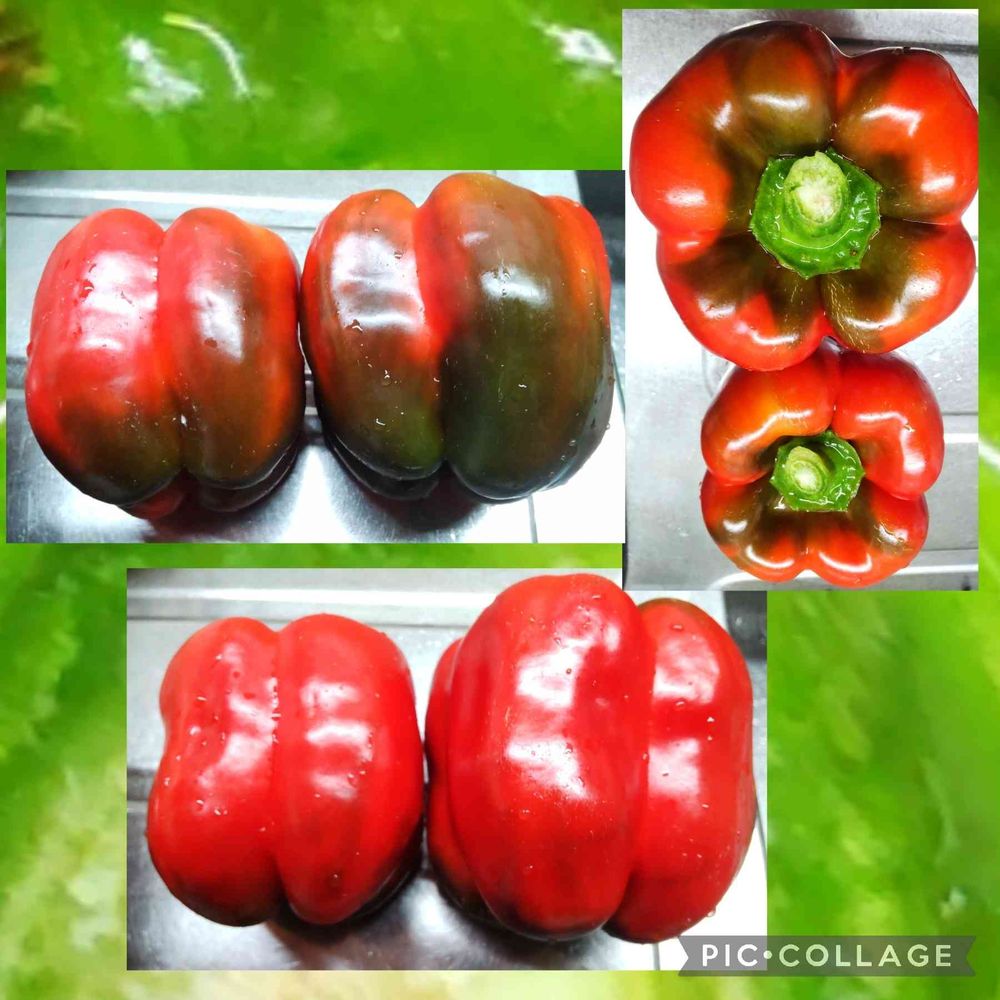 頭とお尻がまだちょっと黒っぽいグリーンなので、どうしようか迷ってたパプリカを2個収穫しました❤️❤️😅