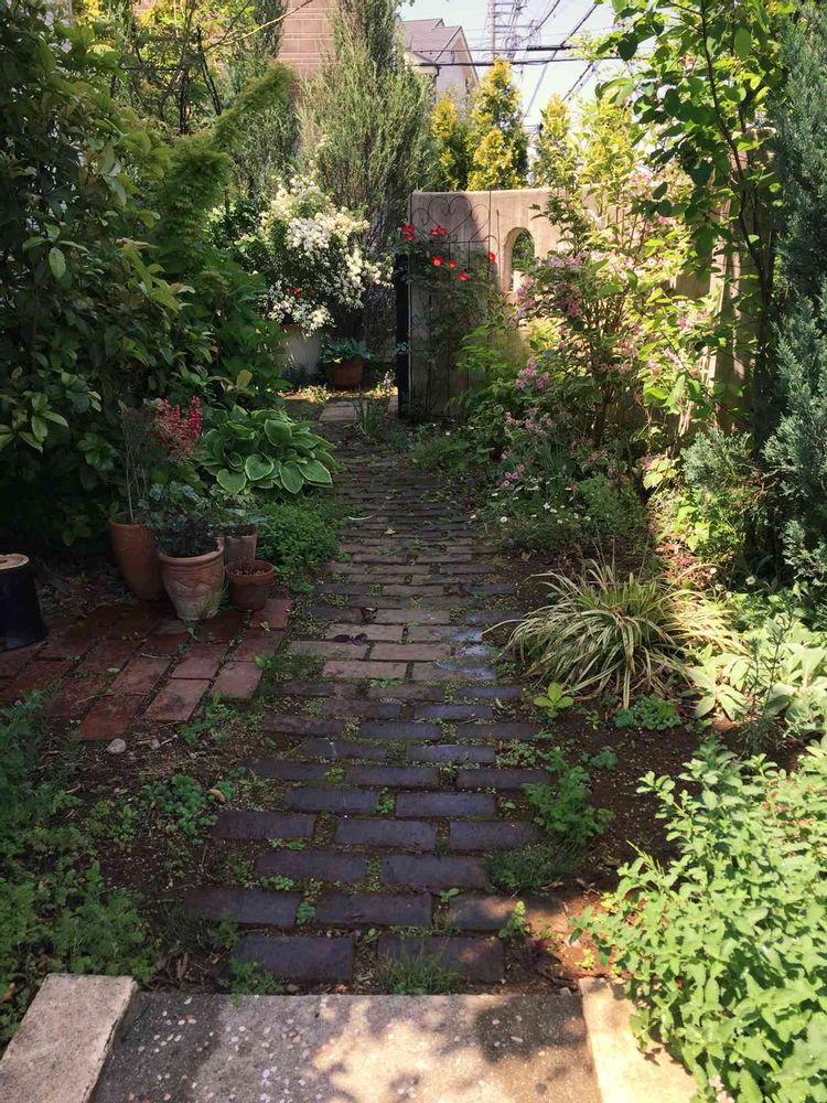レンガの道はわさわさと緑がいっぱいに…(๑ت๑)♡お花も好きだけど、わっさわさの緑の中にポツポツと花が咲いているのが好みです♪