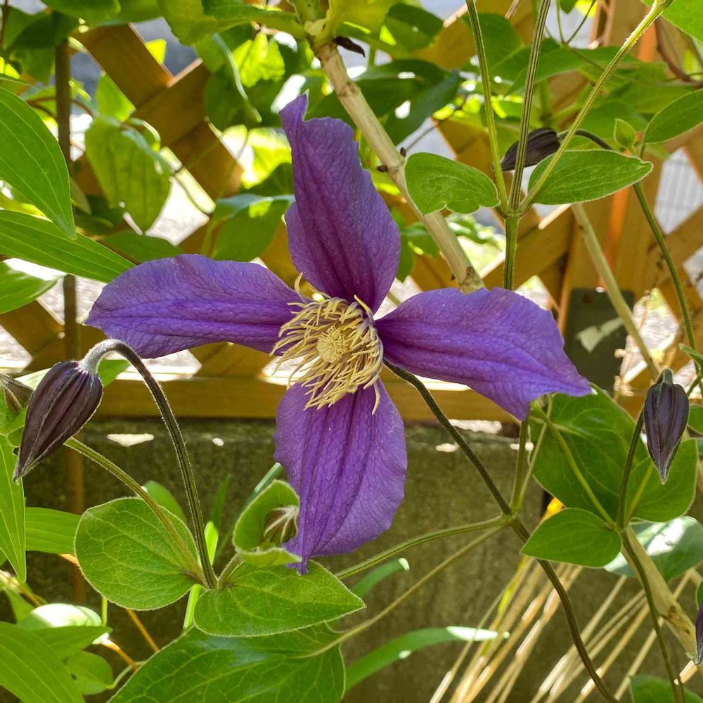 やはり!クレマチスに目👀がとまります💜開花も蕾もこの流れるような曲線がたまりませんね。
