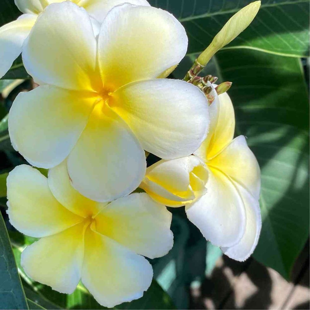 プルメリア『Mele Pa Bowman』久しぶりの開花😊レモン系の強い香り、花弁に厚みがあり、大きな花を咲かせる魅力的な品種です。