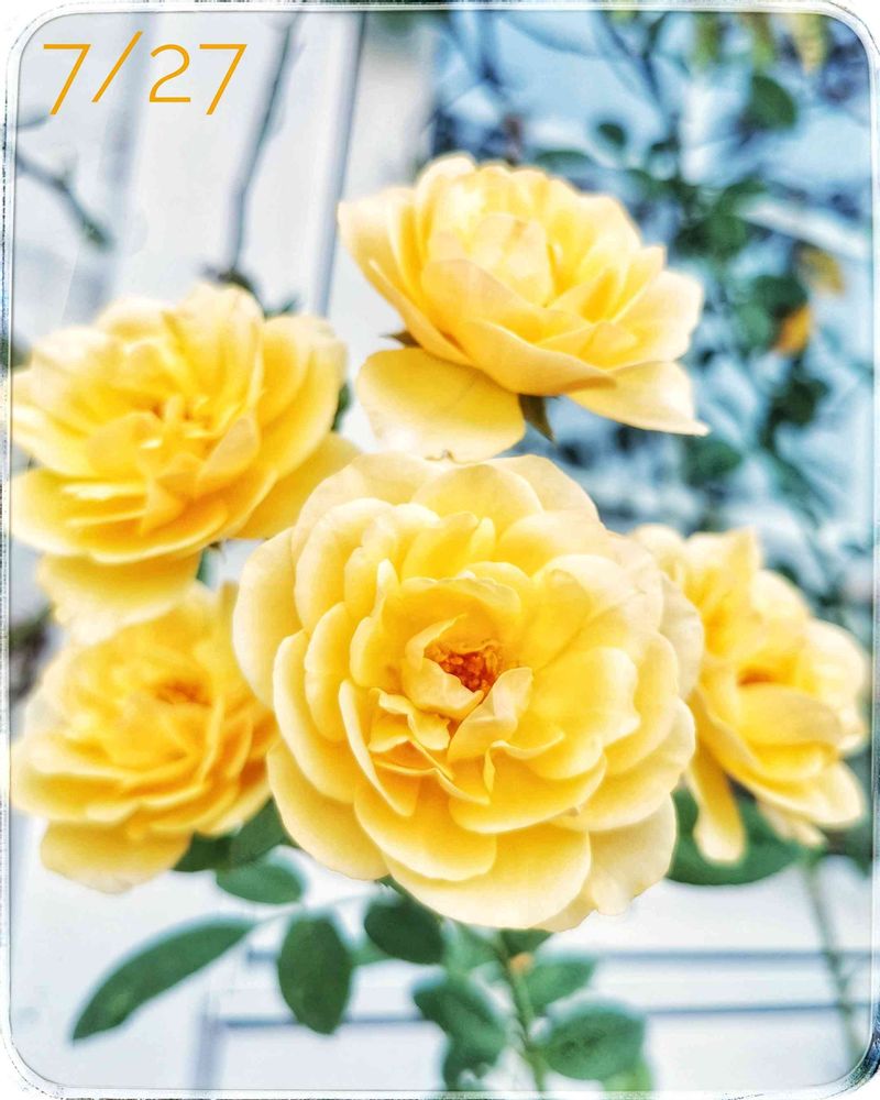 そんな暑い中、朝からグラハムトーマスが開いてました。元気をもらえるような黄色です😃