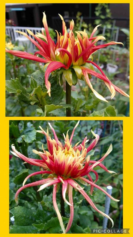 このダリアは、蕾から咲くまでに凄く時間がかかります。去年は咲かず、一昨年は鮮やかな色で咲きました。❤💛
