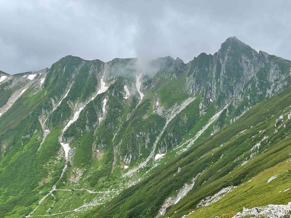 美しい稜線と雪渓を見ると感激です✨✨