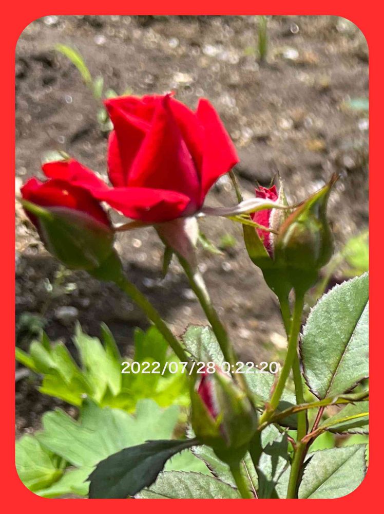 今朝咲いていました。楽しみに待っていたバラ🌹嬉しい😆