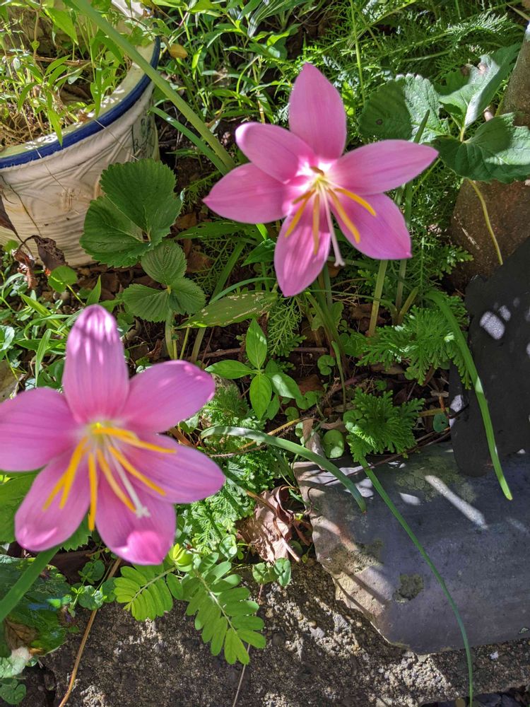 ゼフィランサス。朝の陽射しを浴びて嬉しそうに咲いています。