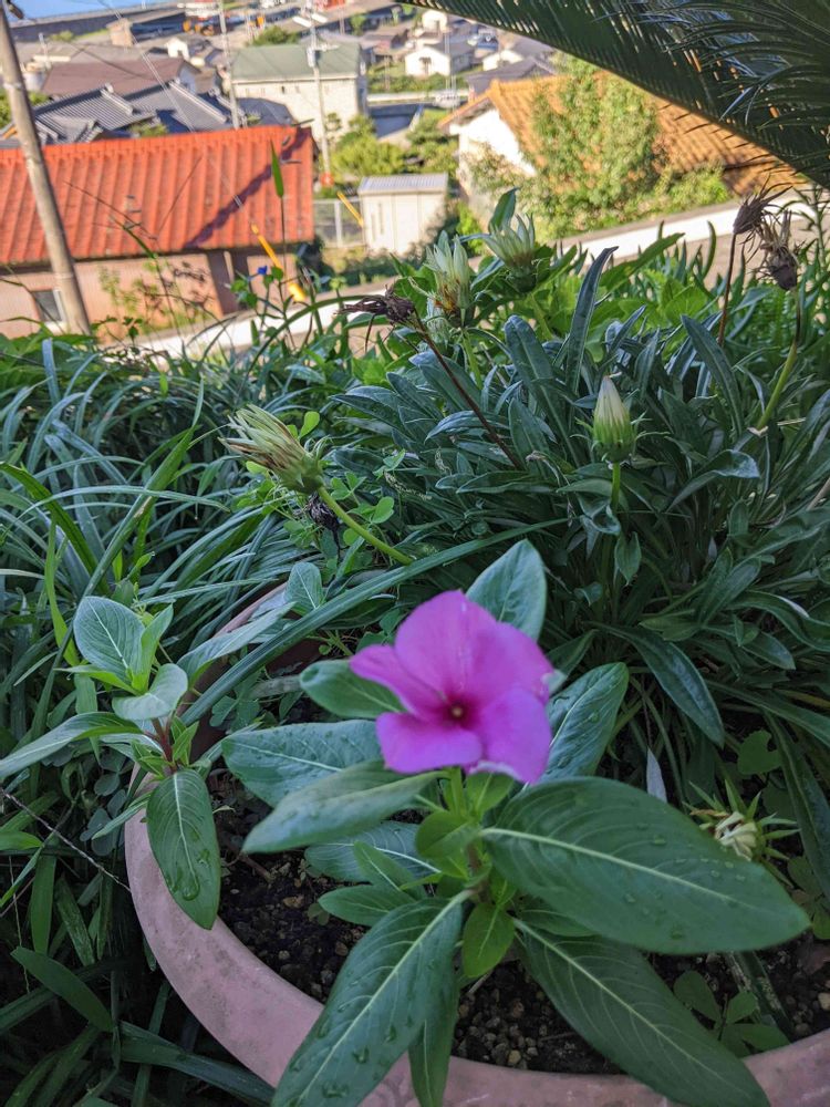 ガザニアの中より、日々草。昨年の夏は日々草を沢山植えていたので、種が飛んだかなあ~?🤔🙄🌱🌼🌞