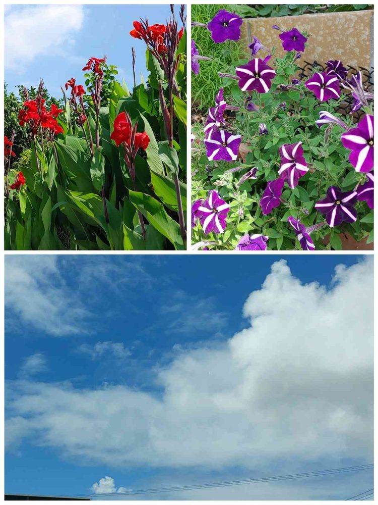 カンナ,ペチュニア,青空。の投稿画像