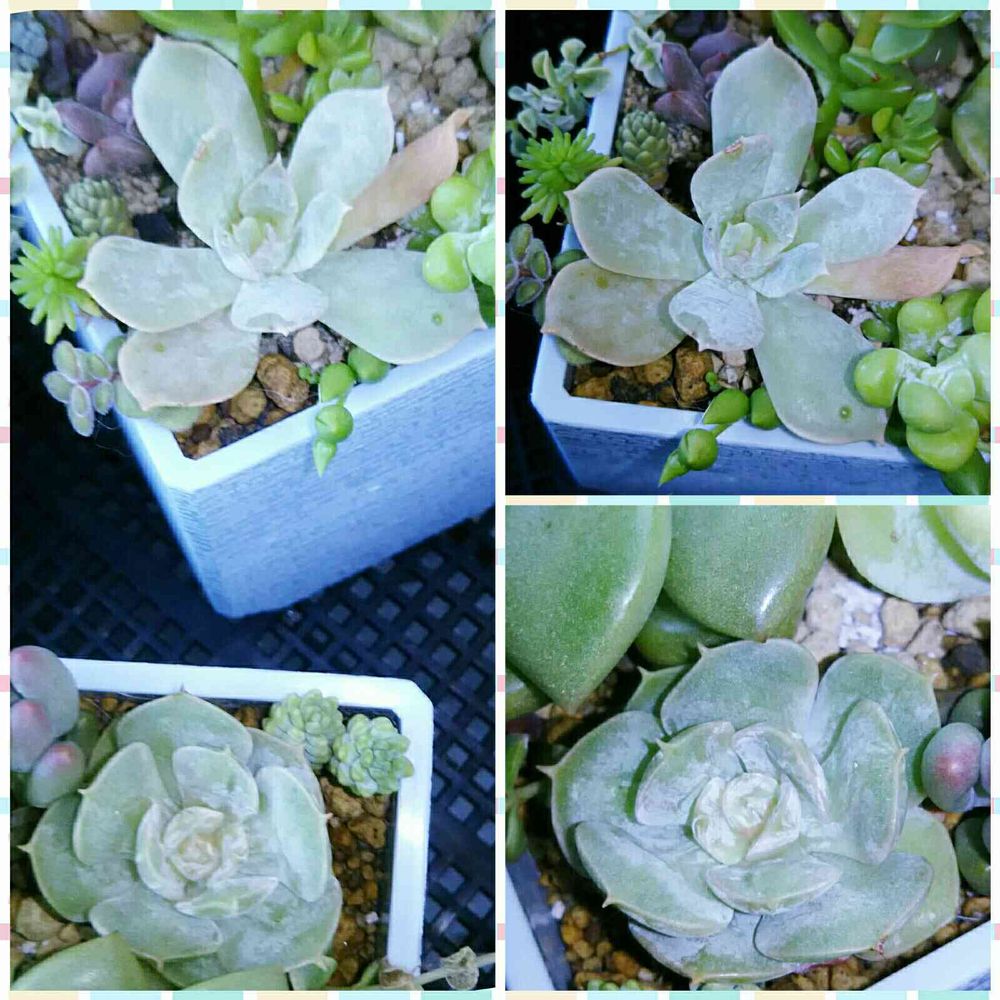 ㊧上&㊨㊤はカット苗から取れかけていた葉を葉挿しトレイで育ててから寄せ植えた子…。