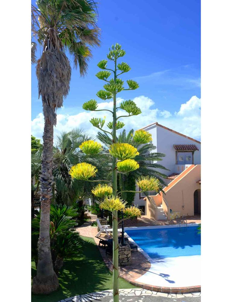 素敵なお家ですね♪南欧の様な雰囲気です🤣リュウゼツランが、すくっと伸びていて、これも不思議な雰囲気☺️夢のようなシーンです😊