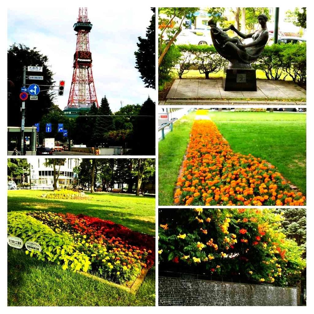 (^^)/ ビタミンカラーな夕暮れ✨時・・ グリーンの芝とのコントラストに 歩き疲れも癒されました☺️
