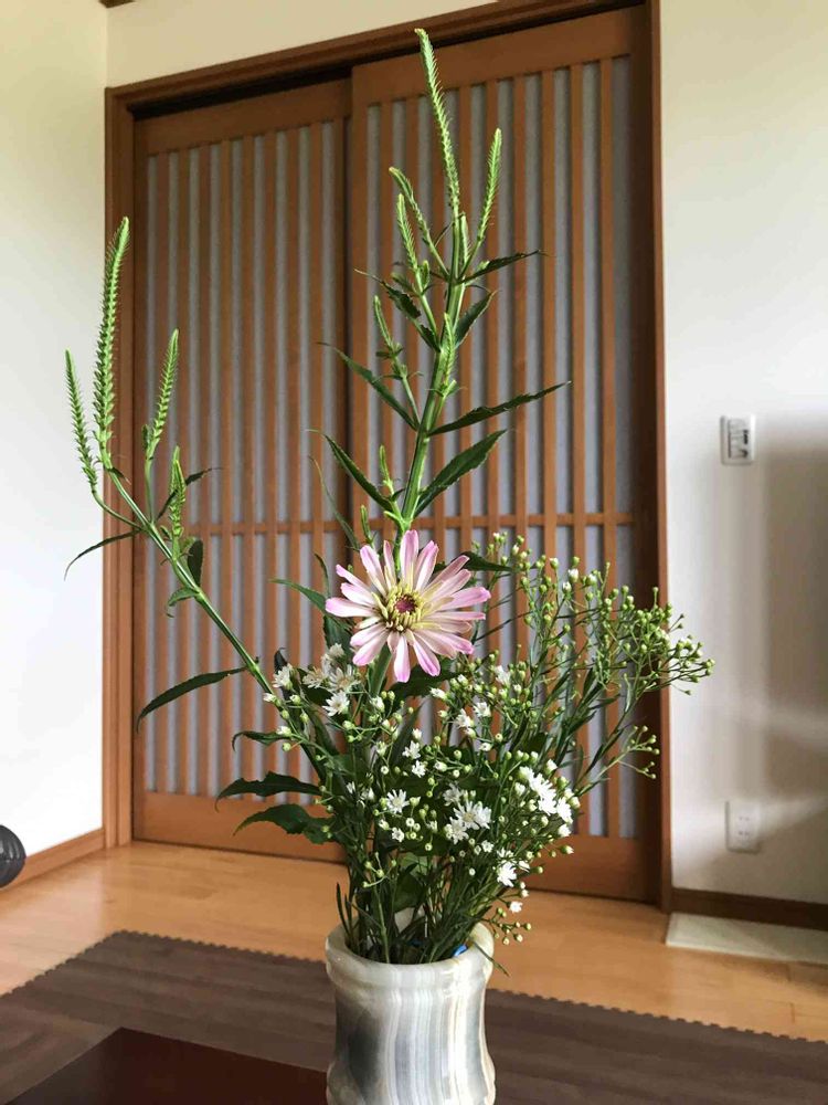 様コメントありがとうございます。毎日暑い日が続いていますね。畑の花達もいつもより元気がない様です。それでも頑張っている花達を家にお迎えしました。また見てくださいね。
