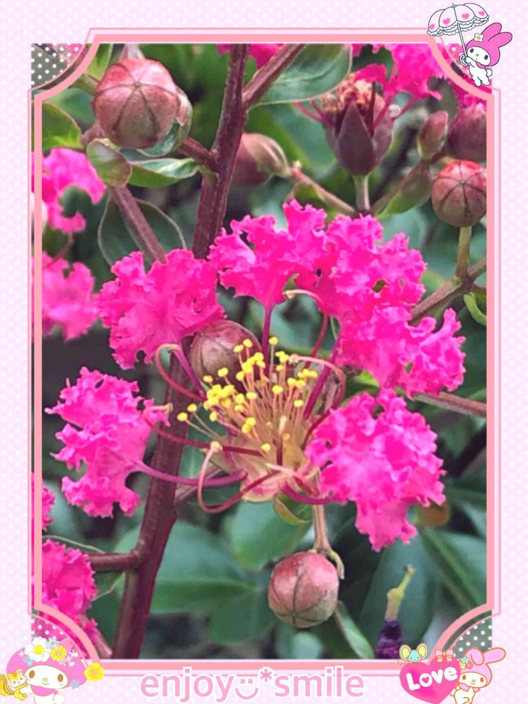 ビビッド💗サルスベリ可愛い〜🎵ご主人豆だね☺