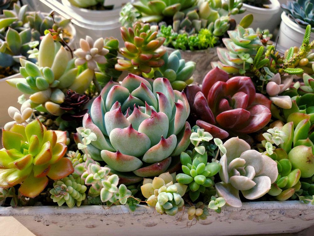 多肉5年生になりました(*´﹀`*) 狭いベランダでチマチマと🎶 癒しを求めてニヤニヤ眺めています•*¨*•.¸¸♬︎ 今年度中に引越しのため、どうやって運ぶか悩み中……🤔