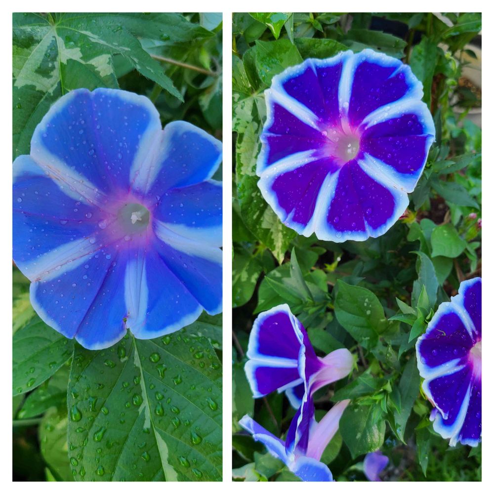 今朝の朝顔は、ブルー系が、たくさん咲いてますね。