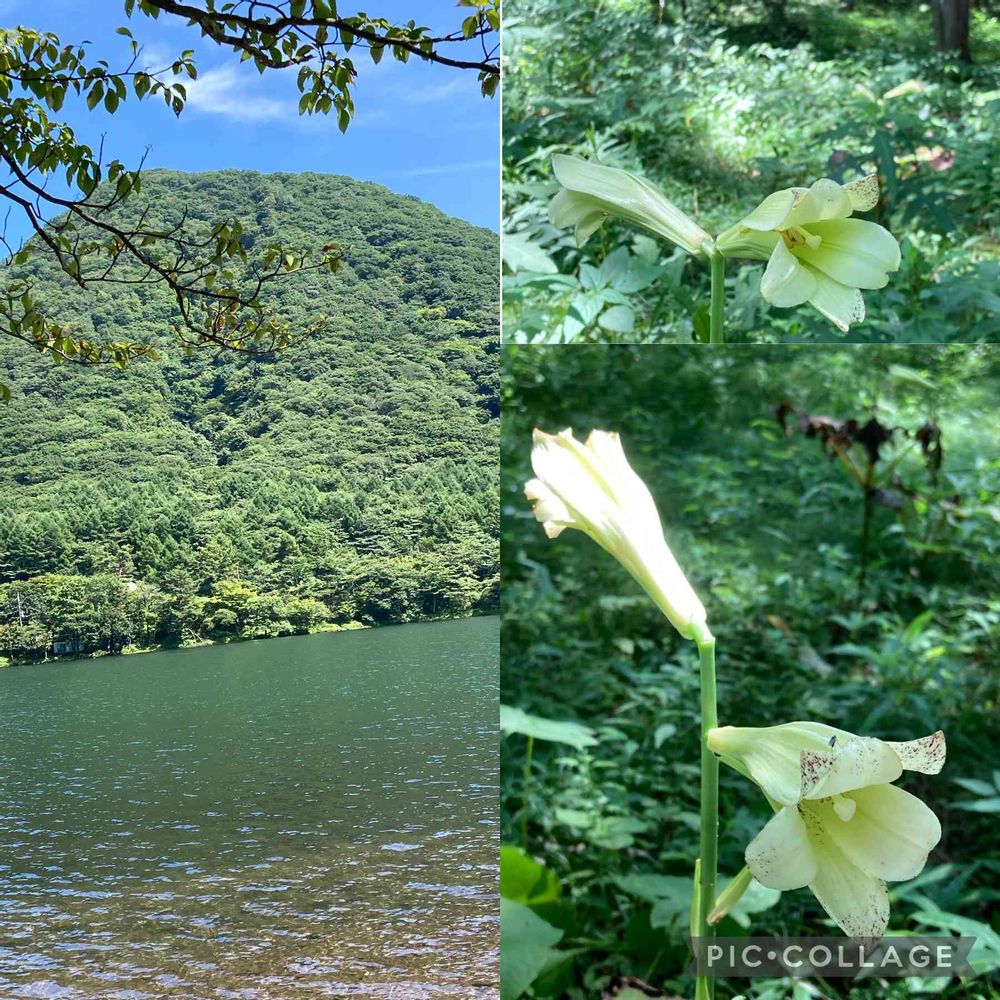 榛名湖と榛名富士と湖畔に咲くウバユリ🎶