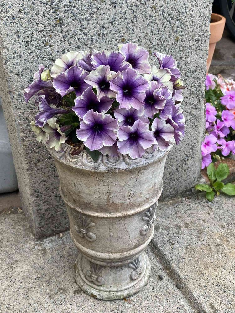 はじめまして…(笑)かもですが、素敵な鉢と🎵似合っていて、素敵なペチュニアさんに、惹かれて、コメントさせていただきますね🎵