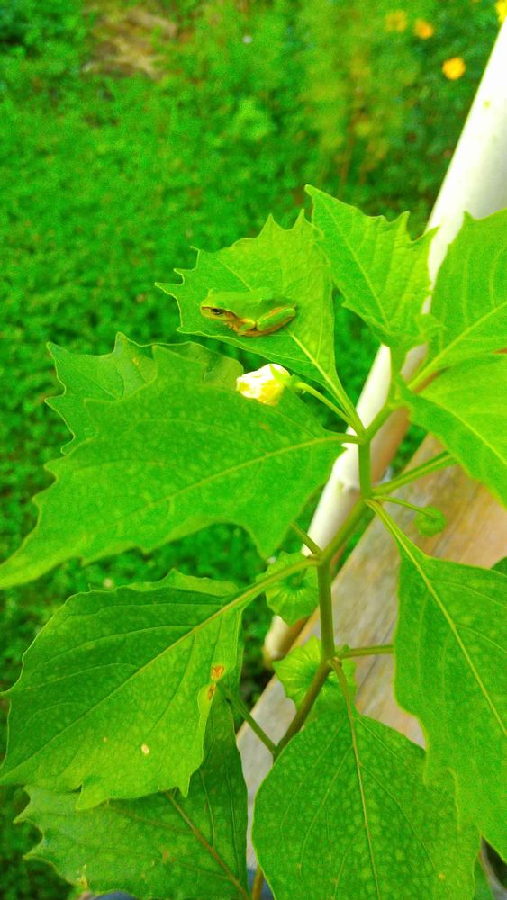 ホウズキもやけど、カエルちゃん🐸の緑が綺麗ですねー。💕🤗🎶