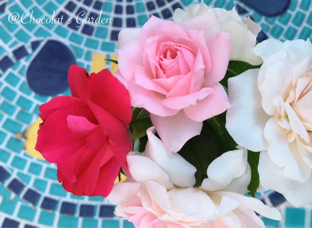 水色のタイルにバラさんたちがよく映えて素敵ですね😍
