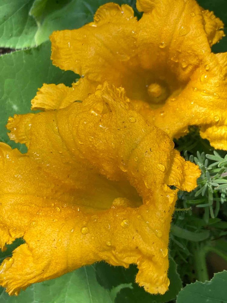 カボチャの花が咲きました、が、いかんせん、プランター。