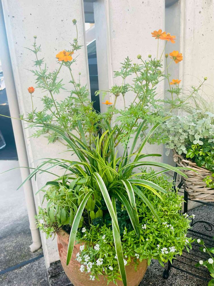 でも今の場所だと一日中日が当たるからこのまま咲かせて大丈夫かな💦キバナコスモスは日に当てたいし、半日陰に移動しようか迷う〜🤔なんとか夏越しさせたい‼︎