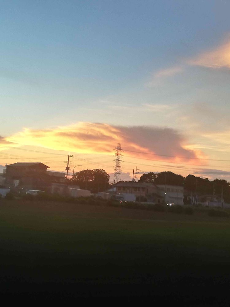 仕事の帰り道、車窓から撮りました。夕焼け🌇が綺麗