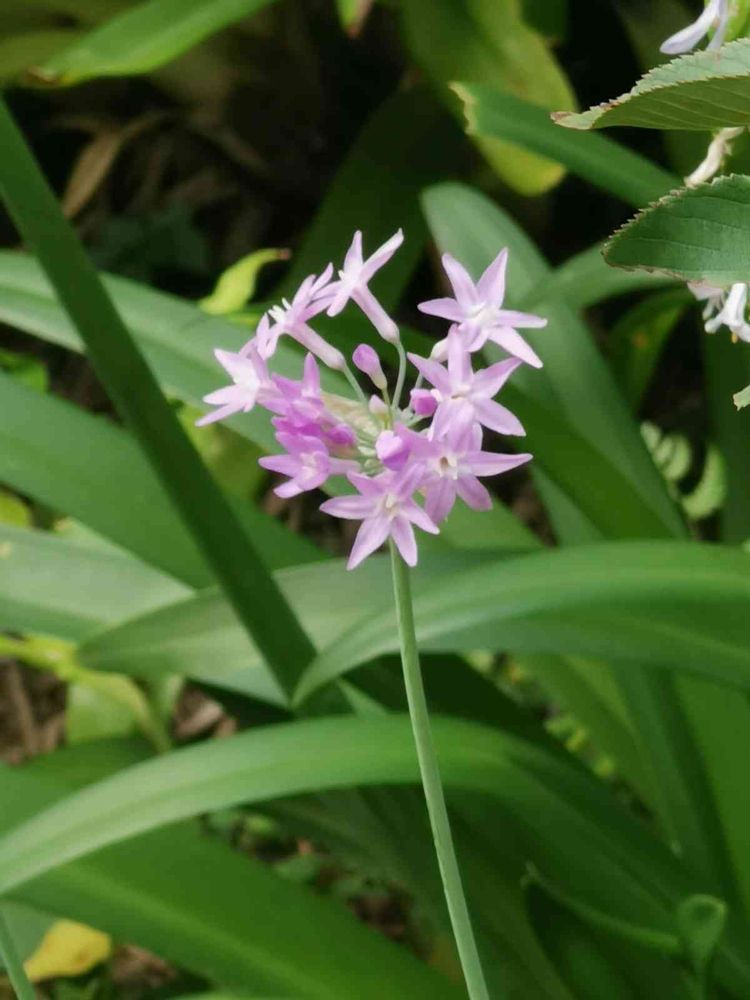 図書館の中庭、1輪のツルバキアが爽やかでした。🌸