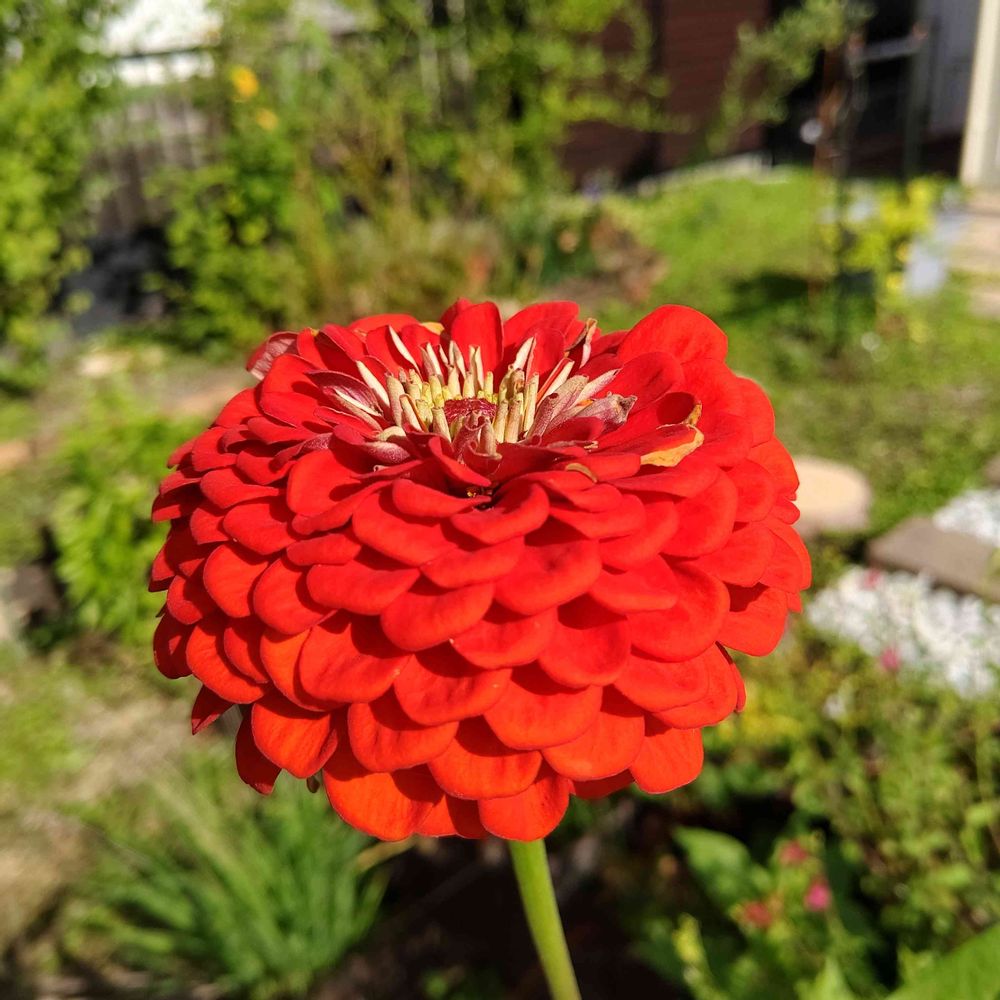 一輪だけど真っ赤で真ん丸で存在感あるわ🎵