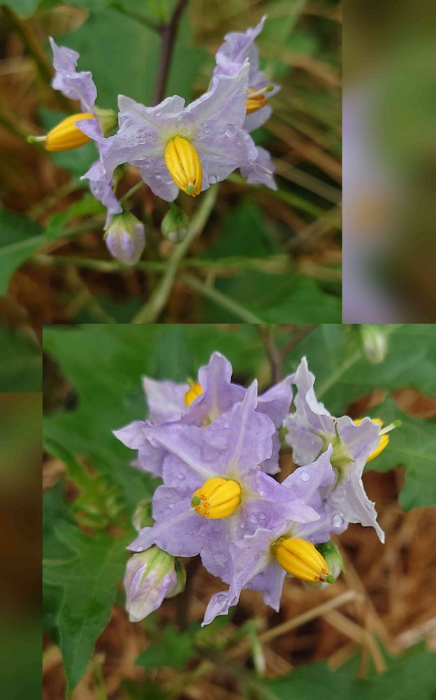 雨に濡れたワルナスビの花、可愛いお花ですが厄介者です💜