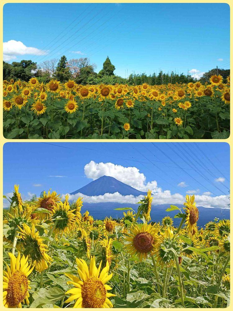 ひまわり🌻畑だけでも綺麗なんですが、富士山🗻がはいると、一段とステキになりますね。