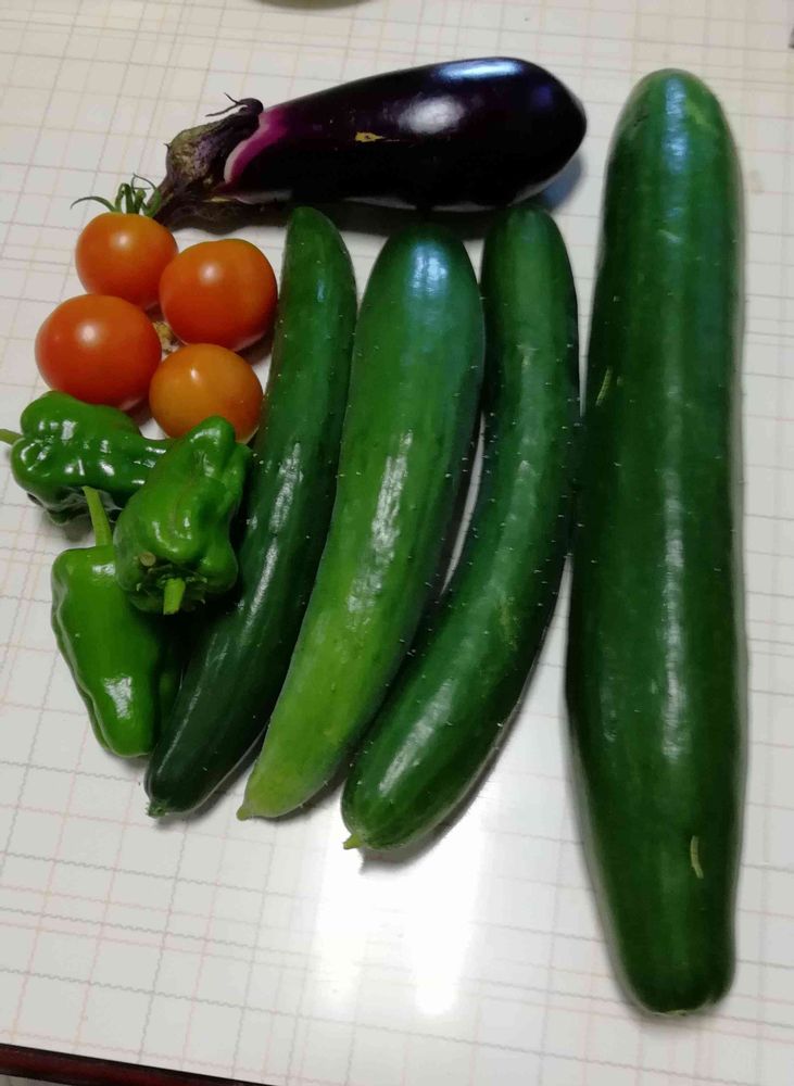 キュウリもみでさっぱりと頂きます🎶🍅は青いのばかり暫くお休みです🍆は大葉と塩揉みして梅肉和えに