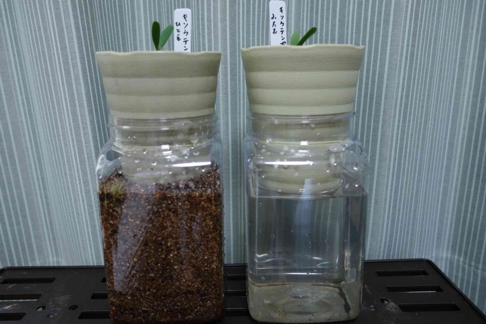 今回やってみたかったのがコレ。地下水脈栽培とでも申しましょうか。腰水栽培の延長で、鉢底から飛び出た根を自由に泳がせてみようって目論見(*’艸’)