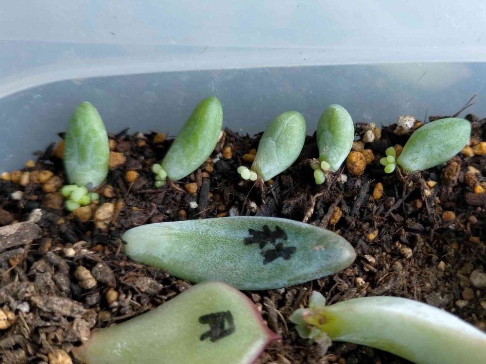 新玉つづりからポロポロ落ちた葉をダメ元で挿してみたら根が出て芽も出た🤣👏