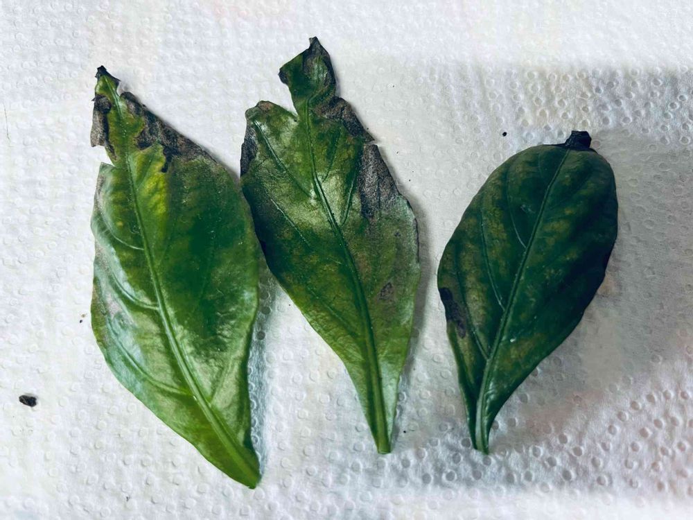 一部の葉っぱがパリパリに乾燥して枯れそうなので霧吹きしてみたよ。そのうちの何枚かで、色を見てみることに。
