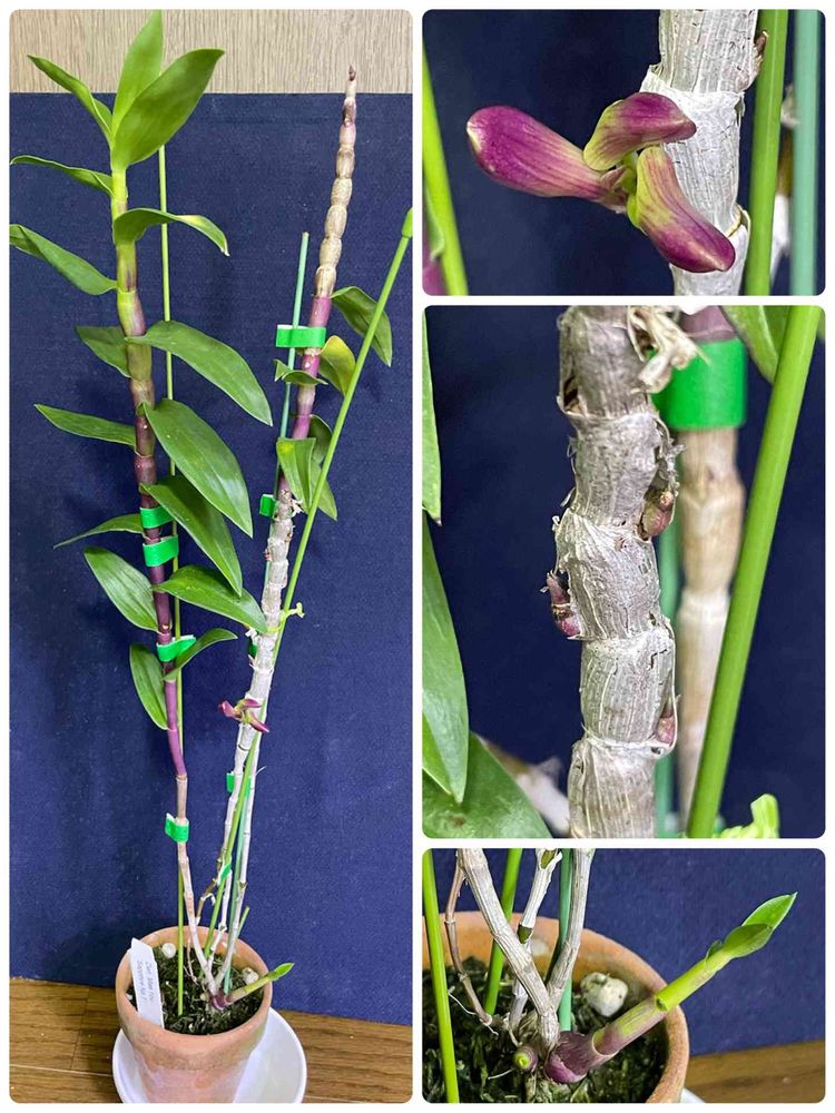 葉の落ちた一昨年のバルブに蕾が付きました。同じバルブの節ごとにも蕾を発見👀