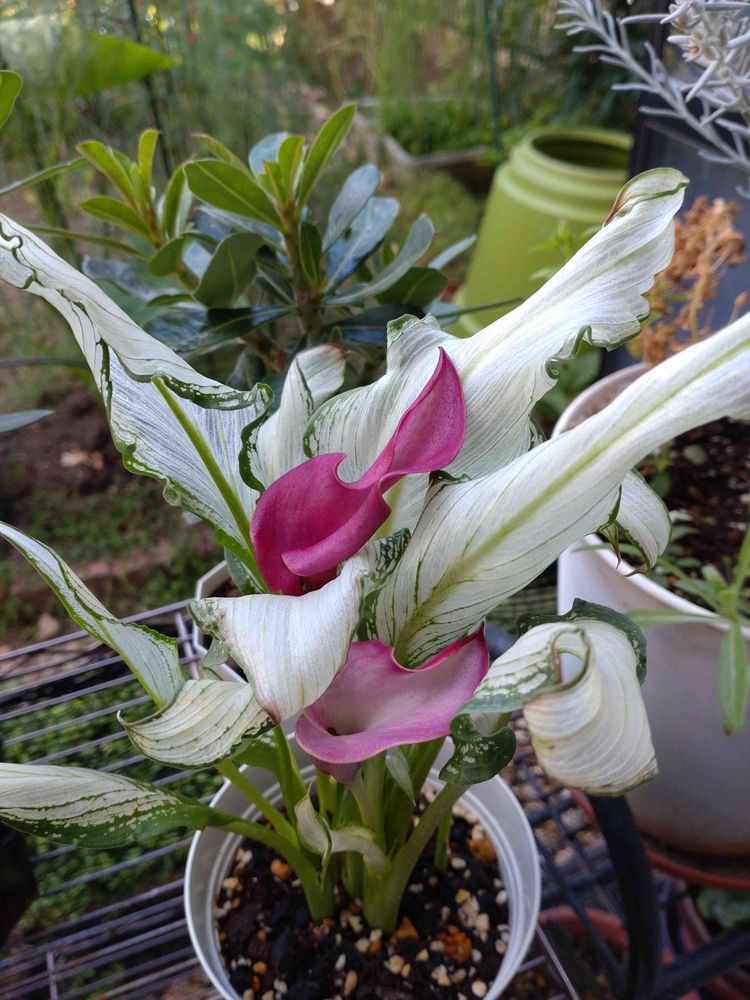 カラーでこんな美しい〜斑入りの葉があるのですね🤗