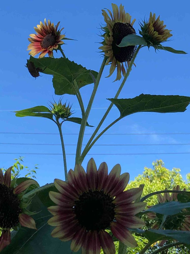 我が家のヒマワリ🌻も花盛りですが青空と一緒に撮ろうと思っても隣の老人ホームの建物で日陰になるので難しい!