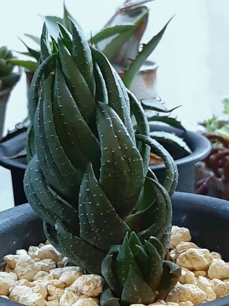ハオルチアに鷹の爪っていう子がいるんだね❣️子株も出ていて、水少なめでも元気そう。優等生だね。